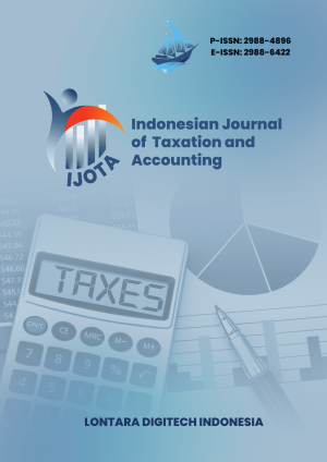 Indonesian Journal of Taxation and Accounting (IJOTA) P-ISSN 2988-4896, E-ISSN 2988-6422 is an open scientific forum for educational researchers, scholars, and practitioners. The journal seeks to digest innovations, issues, and trends in all aspects of taxation and accounting. This journal is also expected to become a space for the publication of research results for researchers and academics in the educational and non-educational fields in the taxation and accounting sciences. Indonesian Journal of Taxation and Accounting (IJOTA) is published by Lontara Digitech Indonesia, in June and December. All submissions are double-blind and reviewed by peer reviewers. All papers can be submitted in Bahasa or English.